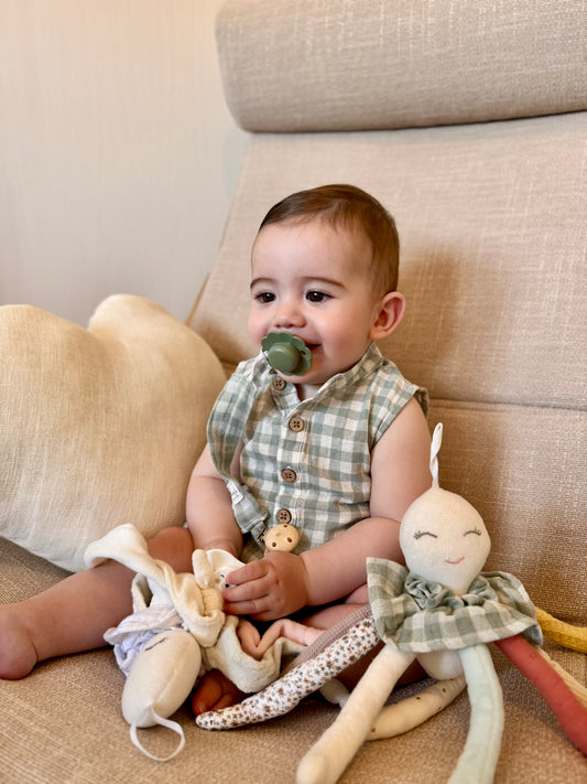 Elegimos cuidadosamente cada material, asegurándonos de que sea suave y respetuoso para tu bebé.
