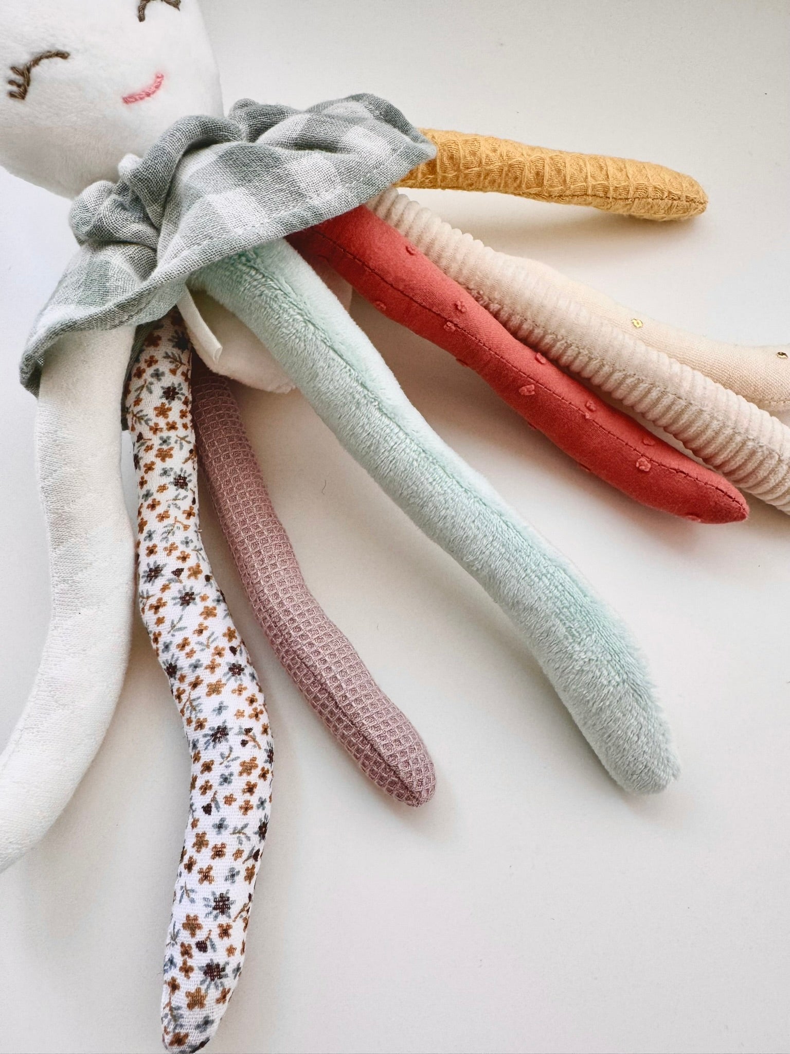 Recuerda, siempre puedes comprarlo en pack o completar tu Nonito el pulpito Sensorial con los tentáculos Doudou sueltos e intercambiar el cuerpo, así Nonito el pulpito acompañará a tu bebé en cada momento del día.